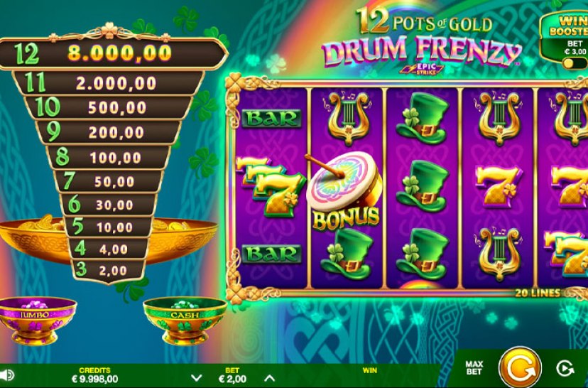 Feel the rhythm in 12 Pots of Gold: Drum Frenzy, a high-voltage Irish adventure powered by Epic Strike™ and Drum Frenzy™ mechanics. Fast-paced spins and electrifying features drive win potential up to 5,165x, creating a fresh tempo of excitement with every beat.