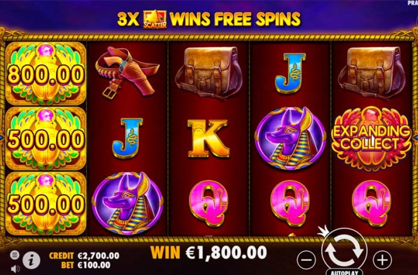 Löydä muinaisen Egyptin rikkaudet tässä 25 linjaisessa, 3x5 Scarab Queen -kolikkopelissä. Rullat on täynnä rahasymboleita, joilla voit voittaa, kasvattaa niiden arvoa, tuplata, laajentaa tai uudelleenpyöräyttää Collect-symbolilla.