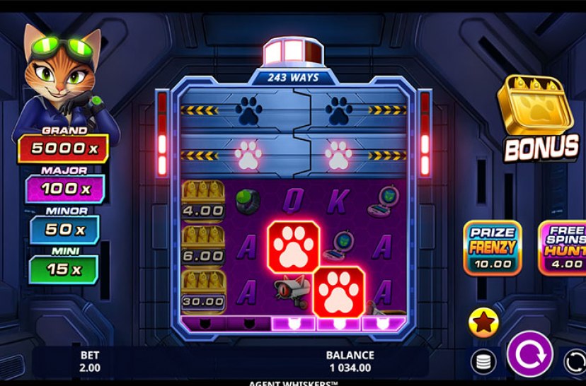 Join Agent Whiskers™, the slickest cat secret agent in town, on a mission packed with mystery and rewards. Collect Pawprints to unlock doors that reveal new chances to win cash and uncover hidden bonuses. With charming animations, spy-themed features and whisker-sharp humour, every spin feels like a top-secret operation with purr-fect potential.