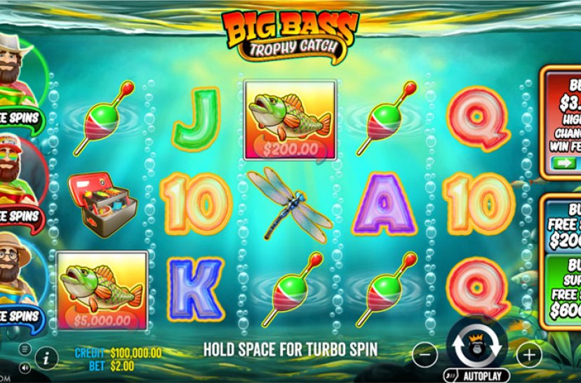 Big Bass Trophy Catch -peli tarjoaa mukaansatempaavan kalastusteemaisen kolikkopelin ilmaiskierroksilla ja laajenevilla palkinnoilla. Käynnistä 10–20 ilmaiskierrosta scatter-symboleilla, joissa kalastaja-wildit keräävät jopa 5000x-kertaisia ​​kaloja. Lisä wild-symbolit parantavat kertoimia ja antavat lisäkierroksia, mikä luo dynaamisia pelisessioita, joilla on vahva voittopotentiaali.