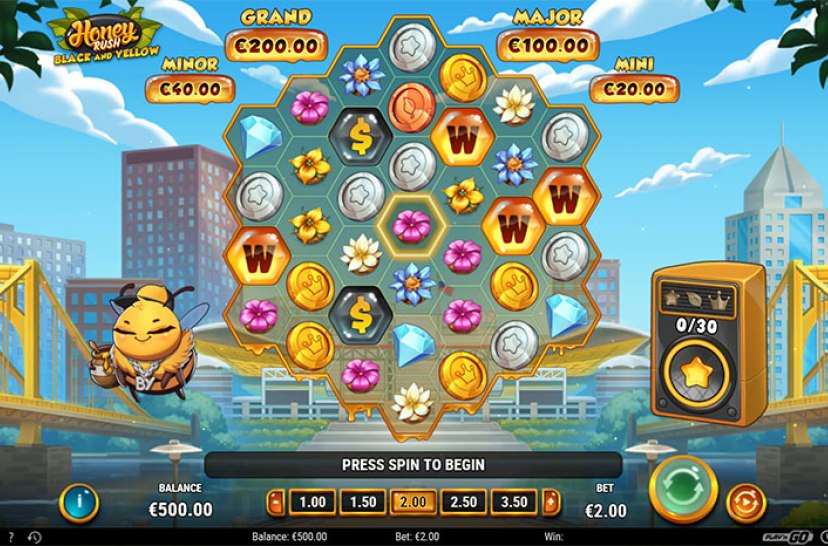 Astu Honey Rush Black and Yellow -kolikkopeliin, jossa urbaanit rytmit kohtaavat sykkivän mehiläispesän energian. Tämä rohkea tulkinta Honey Rush -sarjasta yhdistää eloisat visuaalit dynaamiseen pelattavuuteen. Jokainen pyöräytys tuo mukanaan rytmiä, väriä ja jännitystä, luoden ainutlaatuisen kolikkopelikokemuksen, joka on saanut inspiraationsa musiikista ja kaupungin tunnelmasta.